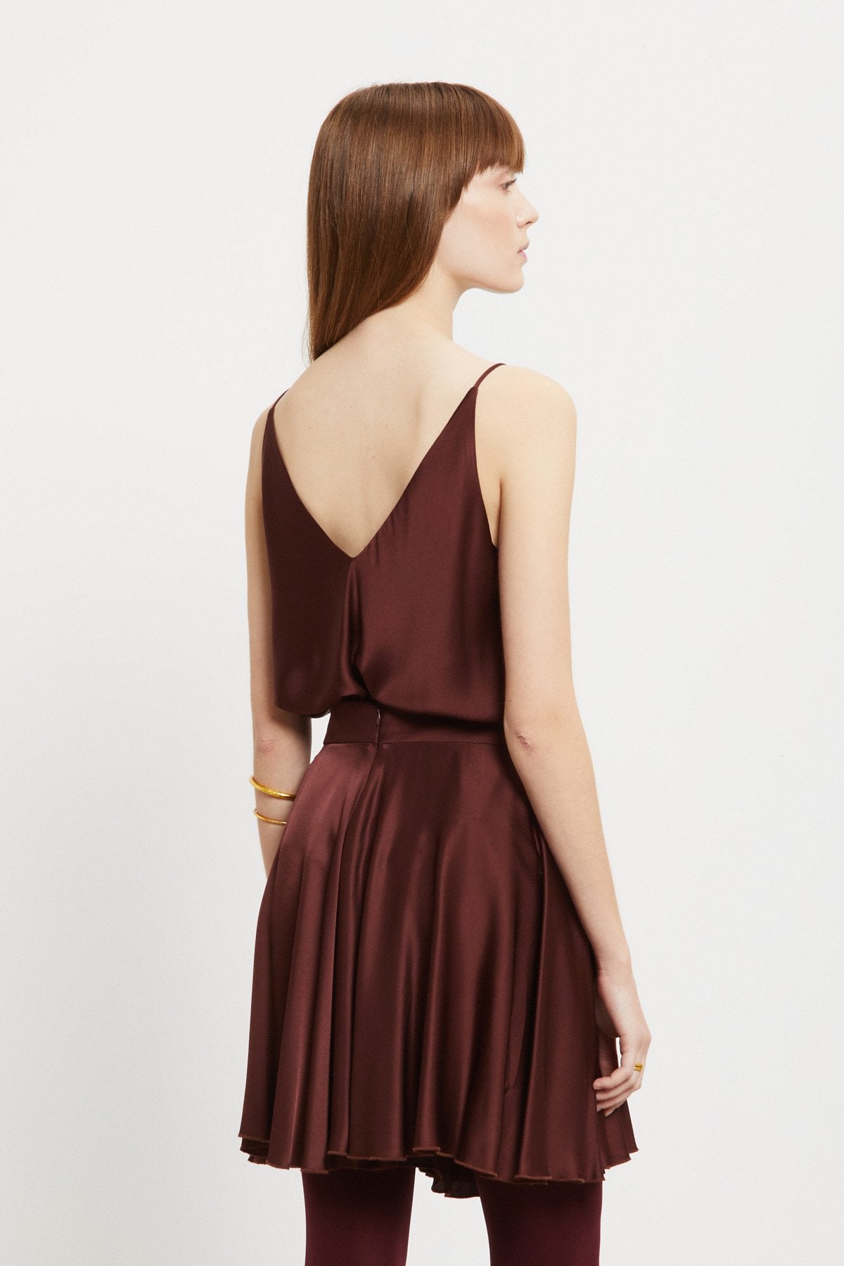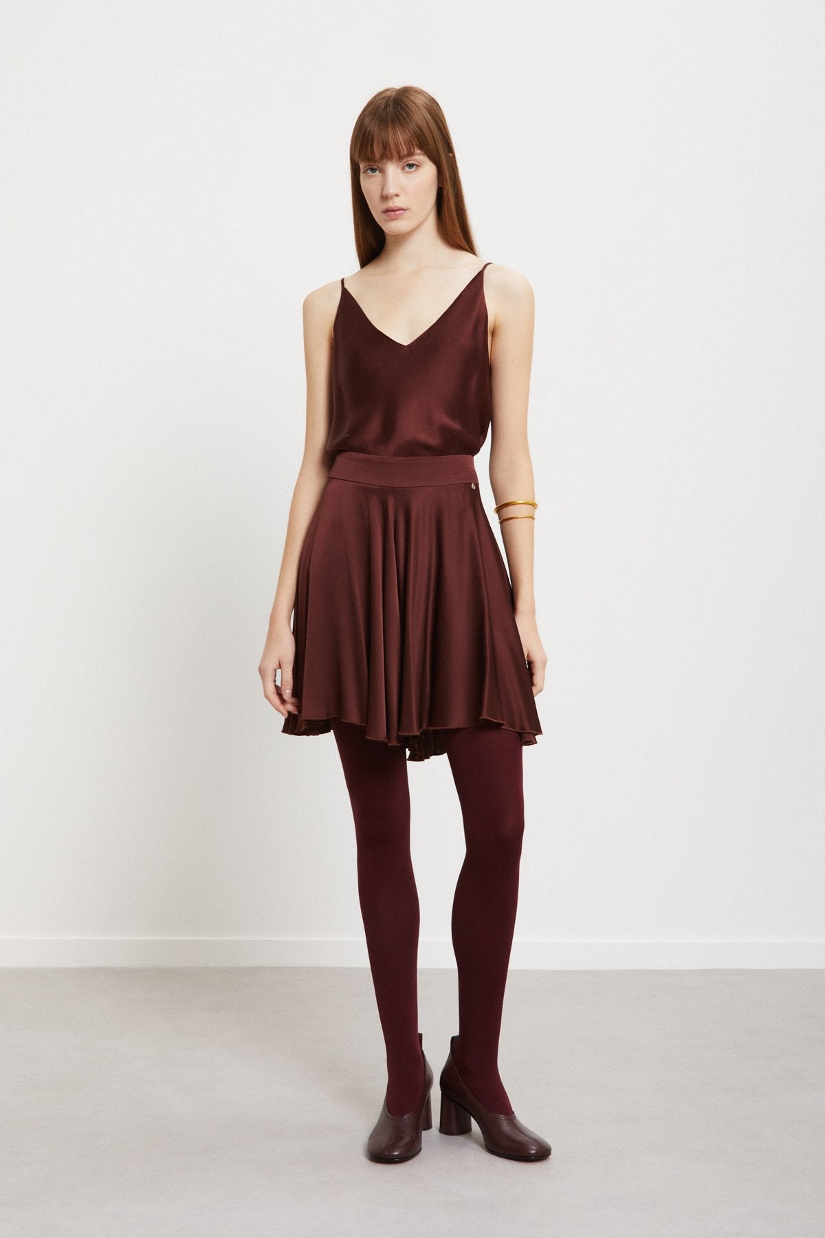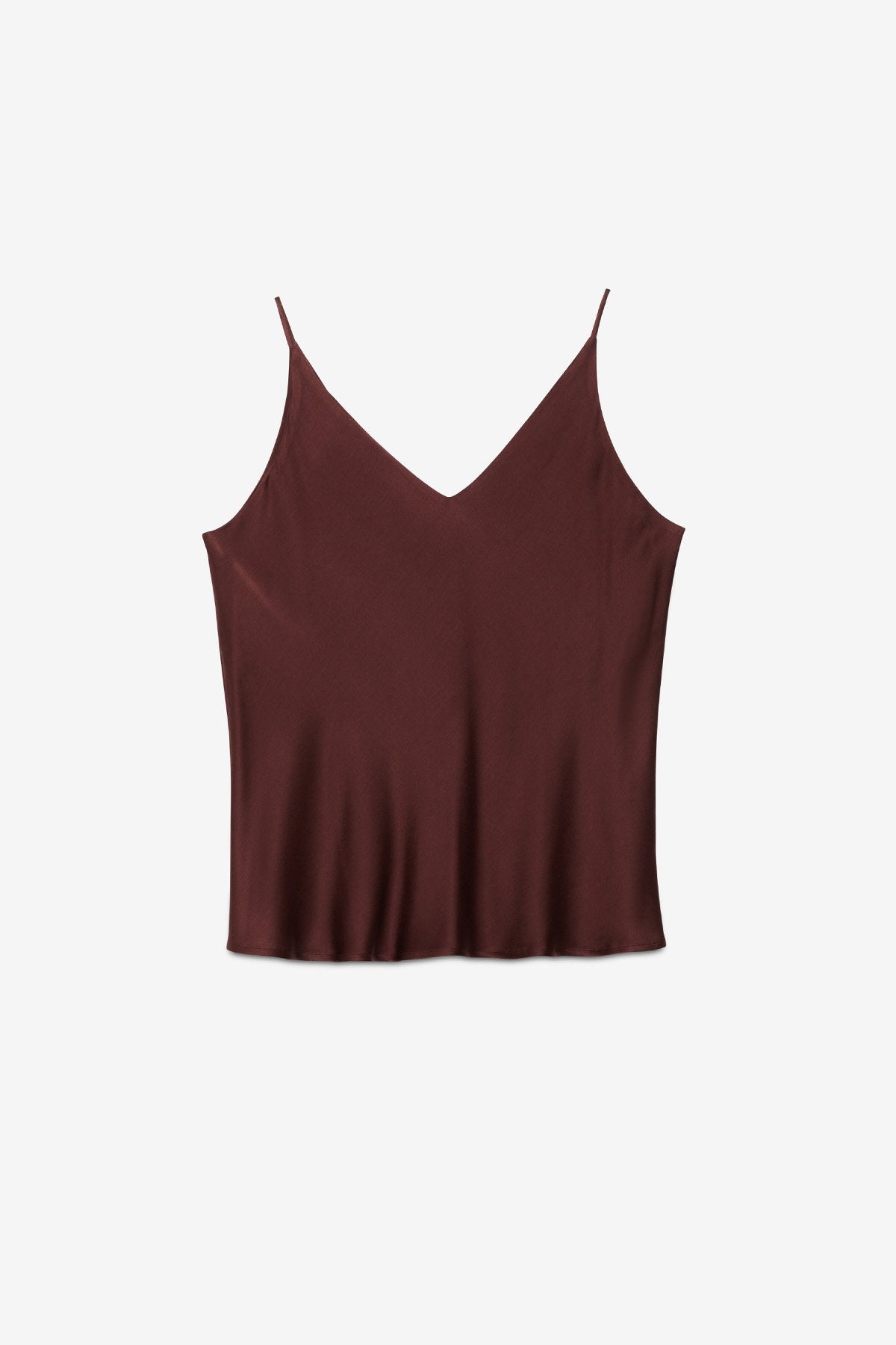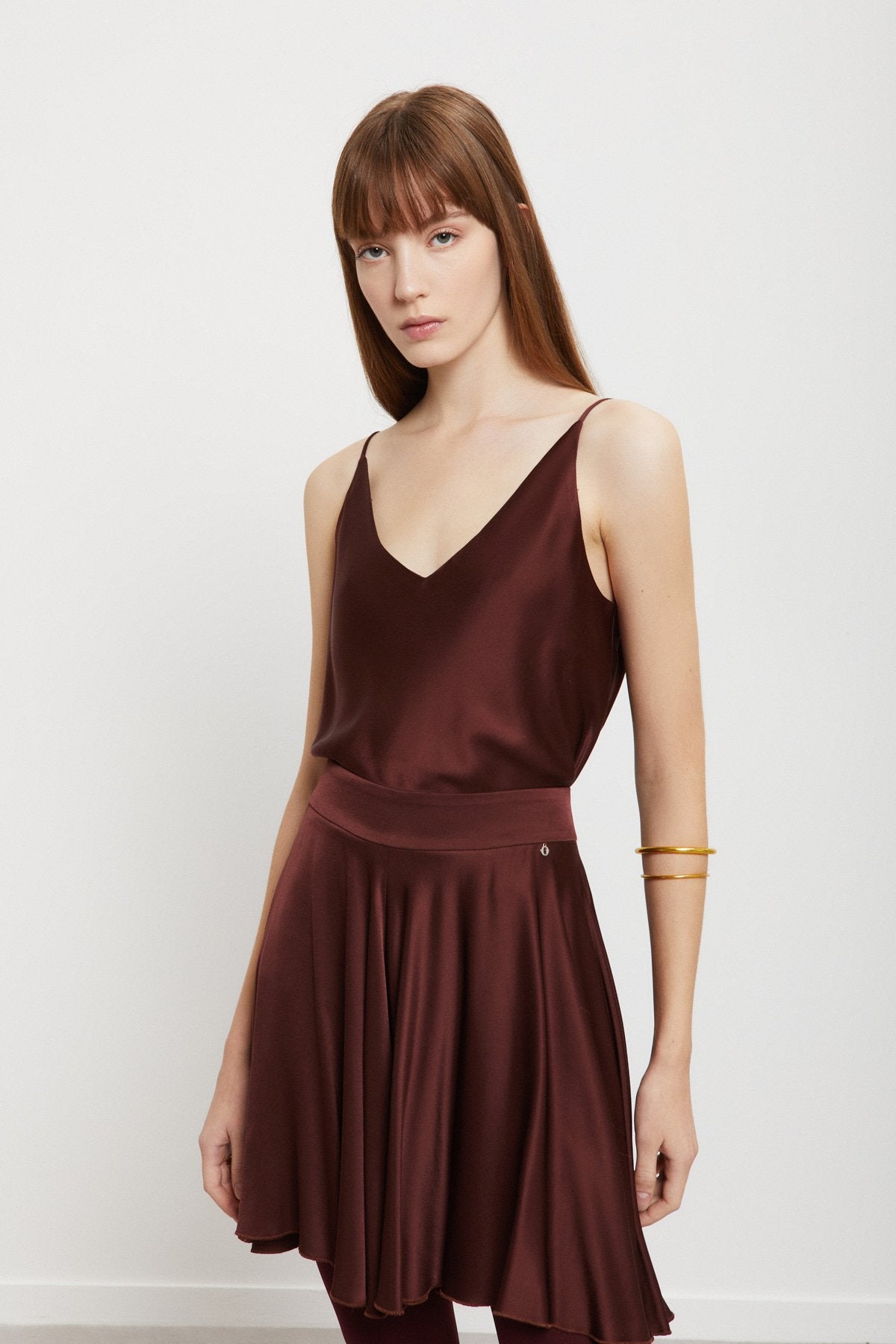 Satin V-Neck Tank Top in Earthy Red by Ottod'Ame